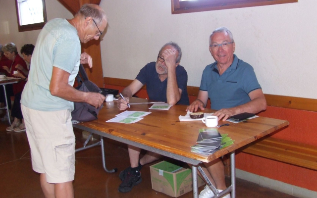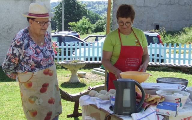 Dès l’aube ou presque, ce dimanche 12 juin, toute la centaine de bénévoles était à pied d’oeuvre pour accueillir après 2 tristes années covid, les participants de la 3° édition des “Fours en Marche”. Le soleil était là lui aussi, et bien vite les parkings se remplirent amenant au village quelques 1400 marcheurs qui se répandirent sur les 6 parcours. Ceux-ci agrémentés de 8 fours et de leurs mitrons accueillants proposaient tartes, fougasses, pizzas, brioches et pains variés à tartiner de confiture, etc… Tous ces visiteurs de nos beaux chemins sont revenus ravis de leurs découvertes et ne souhaitent plus que renouveler l’an prochain.